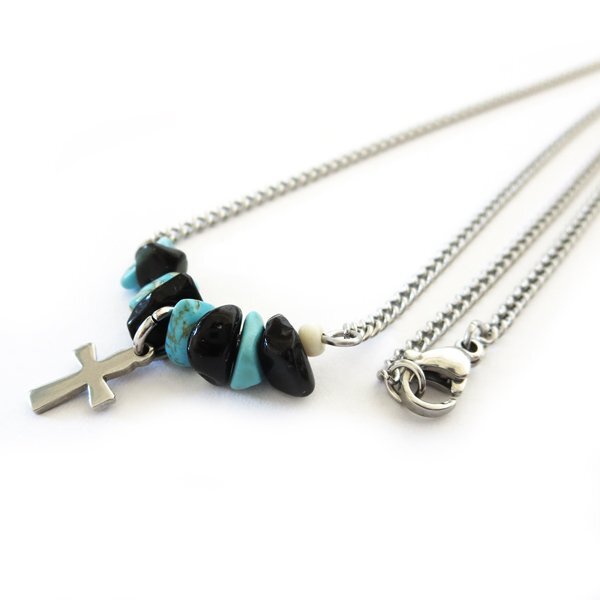 - ステンレスネックレス ターコイズオニキス ミニクロス 全長約45cm BN48
