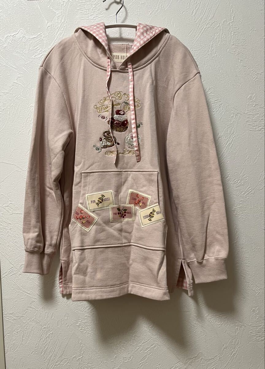 - ピンクハウス スイーツ刺繍トレーナーチェック フード付きトレーナー 刺繍ワッペントレーナー
