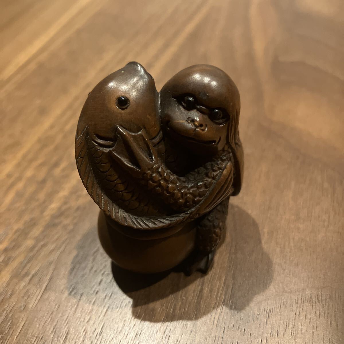- アンティーク コレクター 骨董 蚤の市 根付 ねつけ アマビエ 精巧 木製 柘植 置物 彫刻 オブジェ インテリア