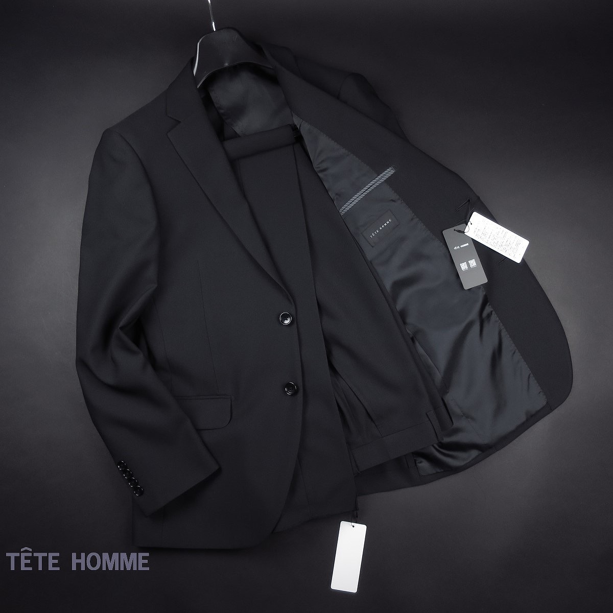 - 新品 ★ TETE HOMME テットオム 4WAY ストレッチ スーツ ウォッシャブル セットアップ 3201 911 黒 無地 【LL】