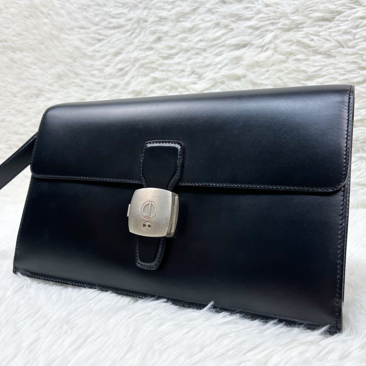 - 極美品 希少型 ●ダンヒル/dunhill クラッチバッグ オーガナイザー 本革 レザー セカンドバッグ 裏地ロゴ総柄 メンズ ビジネス ブラック 黒