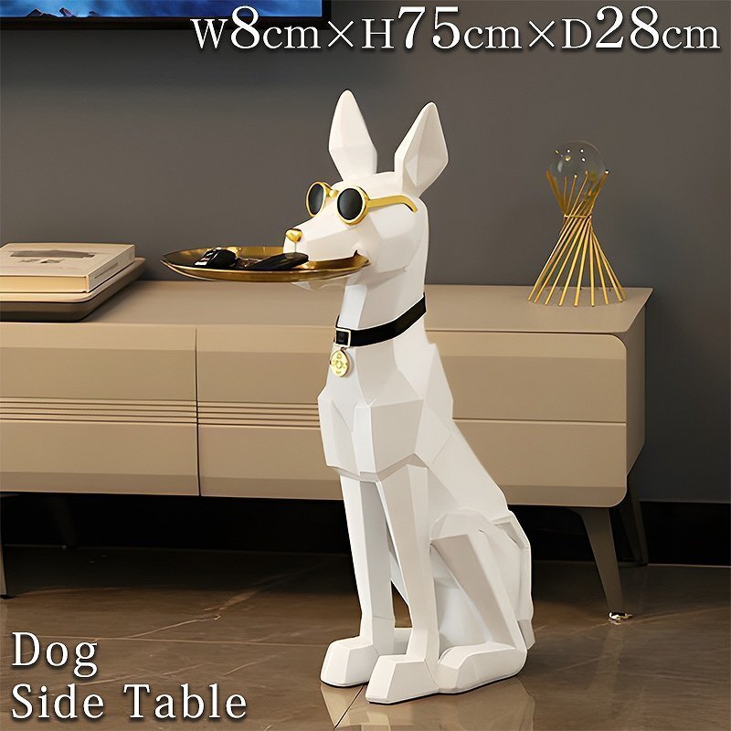 - サイドテーブル おしゃれ 北欧 テーブル ナイトテーブル アクセサリートレイ 収納 鍵置き 玄関 台 ソファ ベッド 高級 オブジェ 犬 UT-08WH