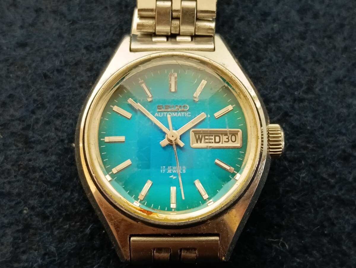 - z1070 稼働品 SEIKO 自動巻き 腕時計 レディース ブルー文字盤 セイコー 2206-0390