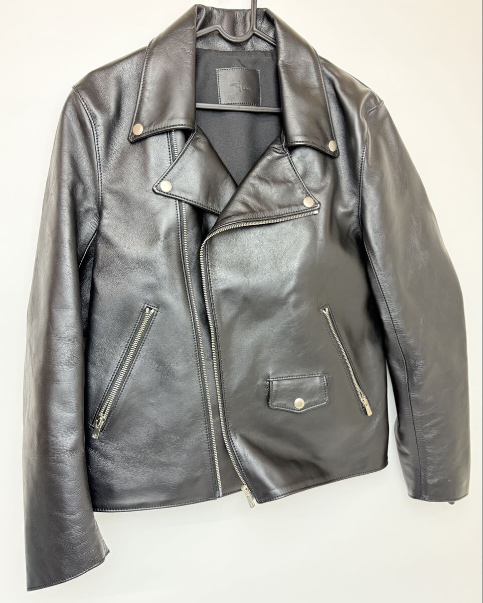 - 23az WHITE+BLACK ダブルライダースジャケット 黒 レザー 革ジャン ブラック