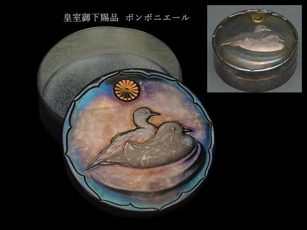 - i148【白蓮】皇室御下賜品 純銀 刻印 鴛鴦文 浩宮徳仁親王御結婚記念 ボンボニエール 小物入れ SILVER 09