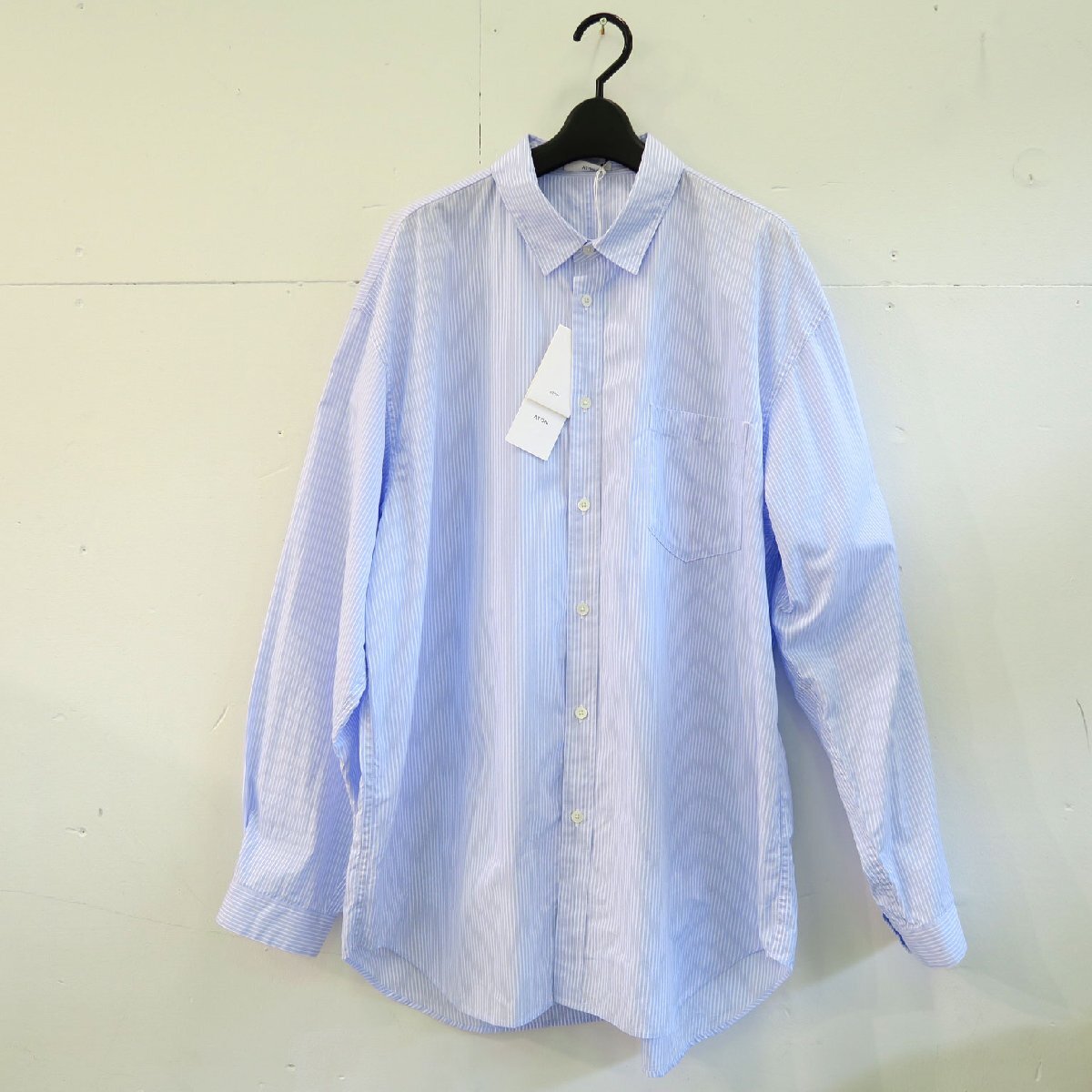 > 【タグ付・新品・定価39,600円】ATON GIZA BROAD WASHED SHIRT BLAGGM1004 SAX STRIPE size4 エイトン オーバーサイズ シャツ ストライプ