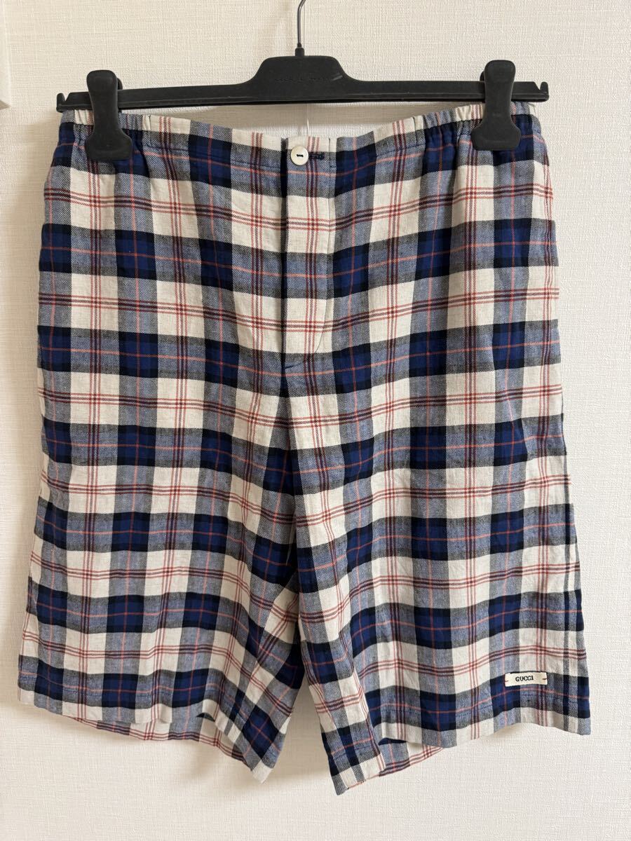> GUCCI Disney グッチ ディズニー チェック総柄 ハーフパンツ ショートパンツ ドナルドダック刺繍 50サイズ