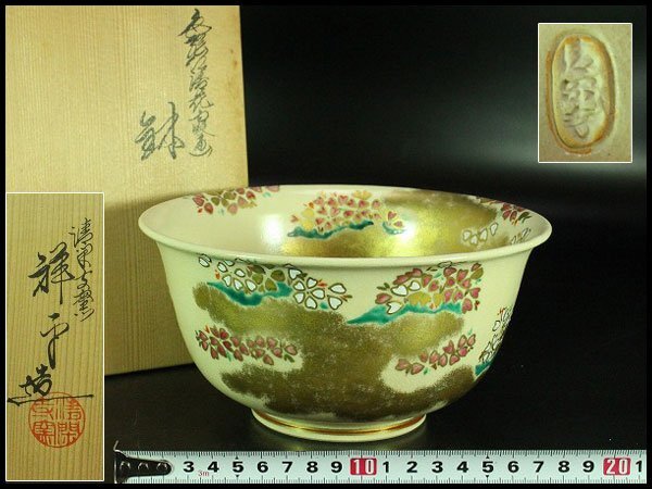 > 【金閣】茶道具 清閑寺 祥平造 色絵桜花霞画 鉢 共箱 美品 旧家蔵出 送料無料(YC525)