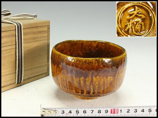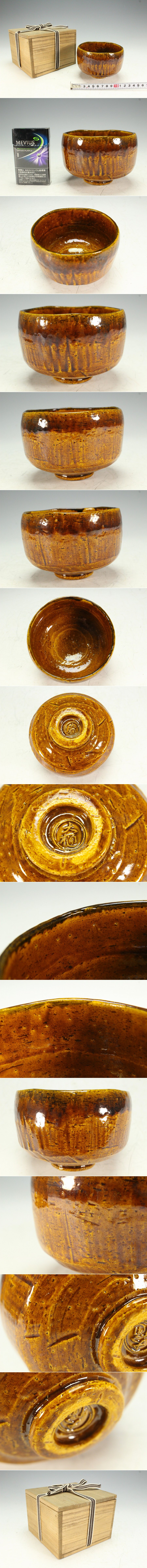 - 【金閣】茶道具 大樋 飴釉茶碗 美品 旧家蔵出 送料無料(A672)