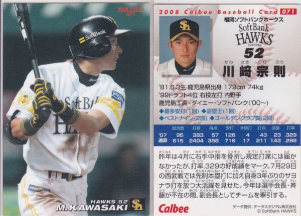 > ●2008カルビー 【川﨑 宗則】 BASEBALL CARD No.071:Hawks R9