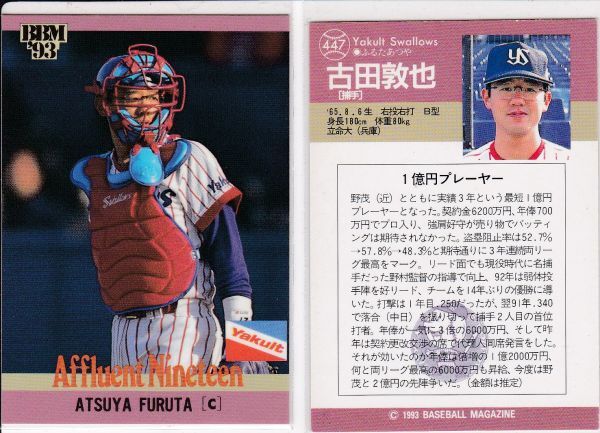 - ●1993BBM 【古田 敦也】 一億円プレーヤー No.447:ヤクルト R2