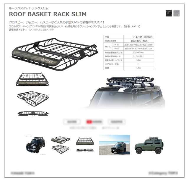 - TERZO(PIAA) ルーフラック ルーフバスケットスリムラック EA311 軽自動車/小型SUV向け 店頭引渡し 【長野発】
