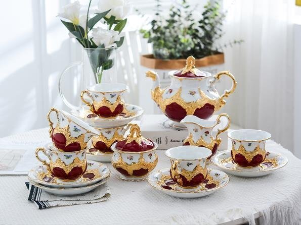 - MEISSEN B-FORM マイセン ティーポット&カップ&ソーサー&ミルクポット&シュガーポット 15点セット 洋食器 インテリア レッド ms0006