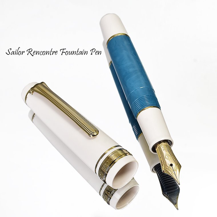 > ■●【SAILOR/セーラー】Rencontre/ランコントル 万年筆 ブルーシエル プロギアスリム ミニ 14金 MF中細 青軸 マーブル 新品 1円~/S314BL