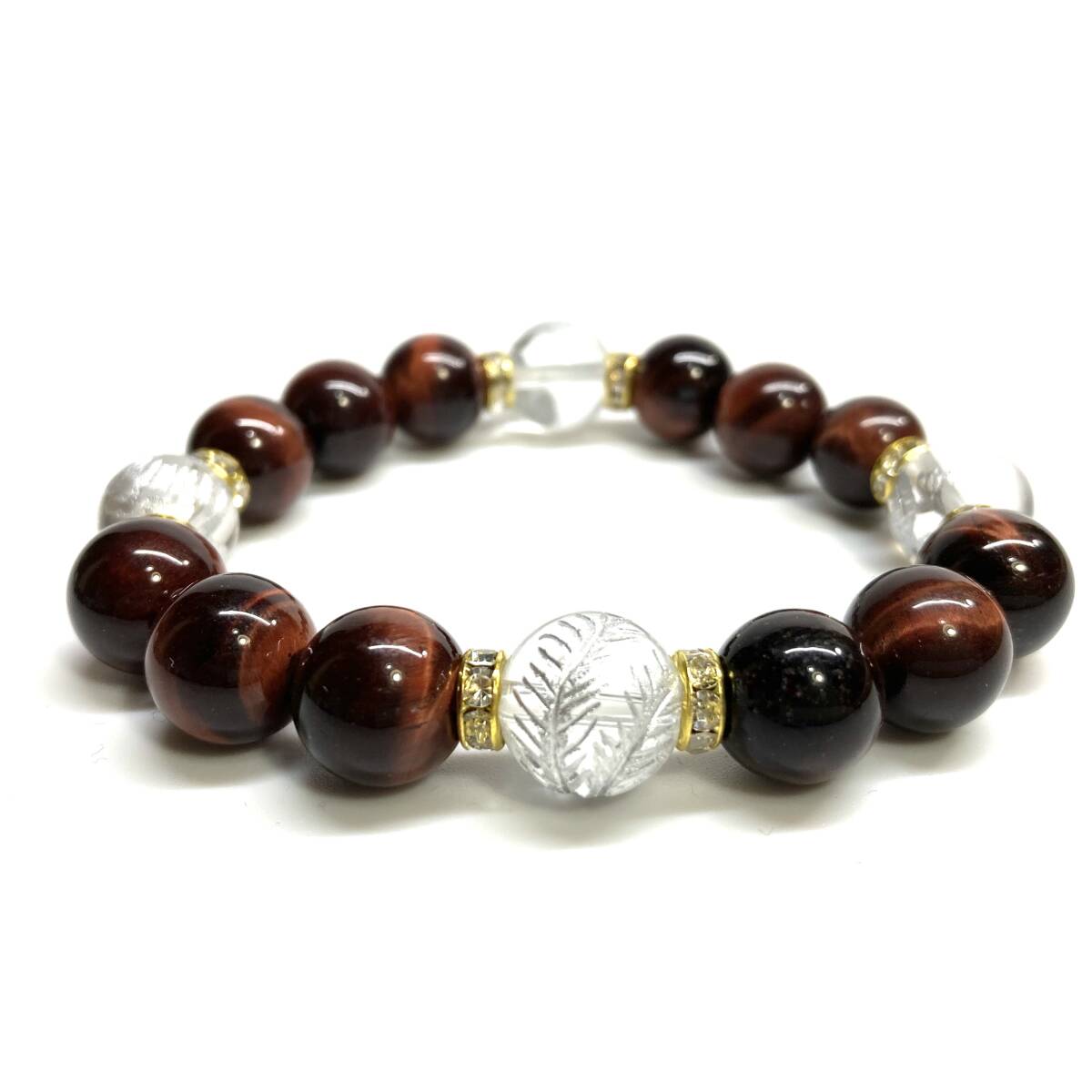 - 四神獣銀彫水晶×レッドタイガーアイ 12mm パワーストーン ブレスレット天然石 青龍 白虎 玄武 朱雀 運気上昇 お守り 四神獸 四神相応 G
