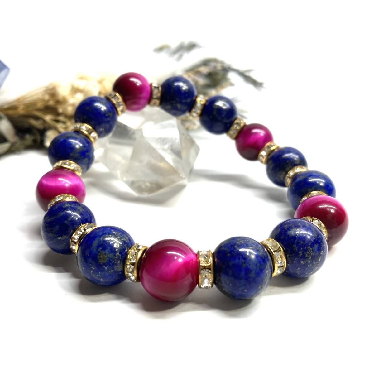 - ラピスラズリ&ピンクタイガーアイ パワーストーン ブレスレット 天然石ブレス (ゴールド) 12mm 幸運 開運 メンズ 男性