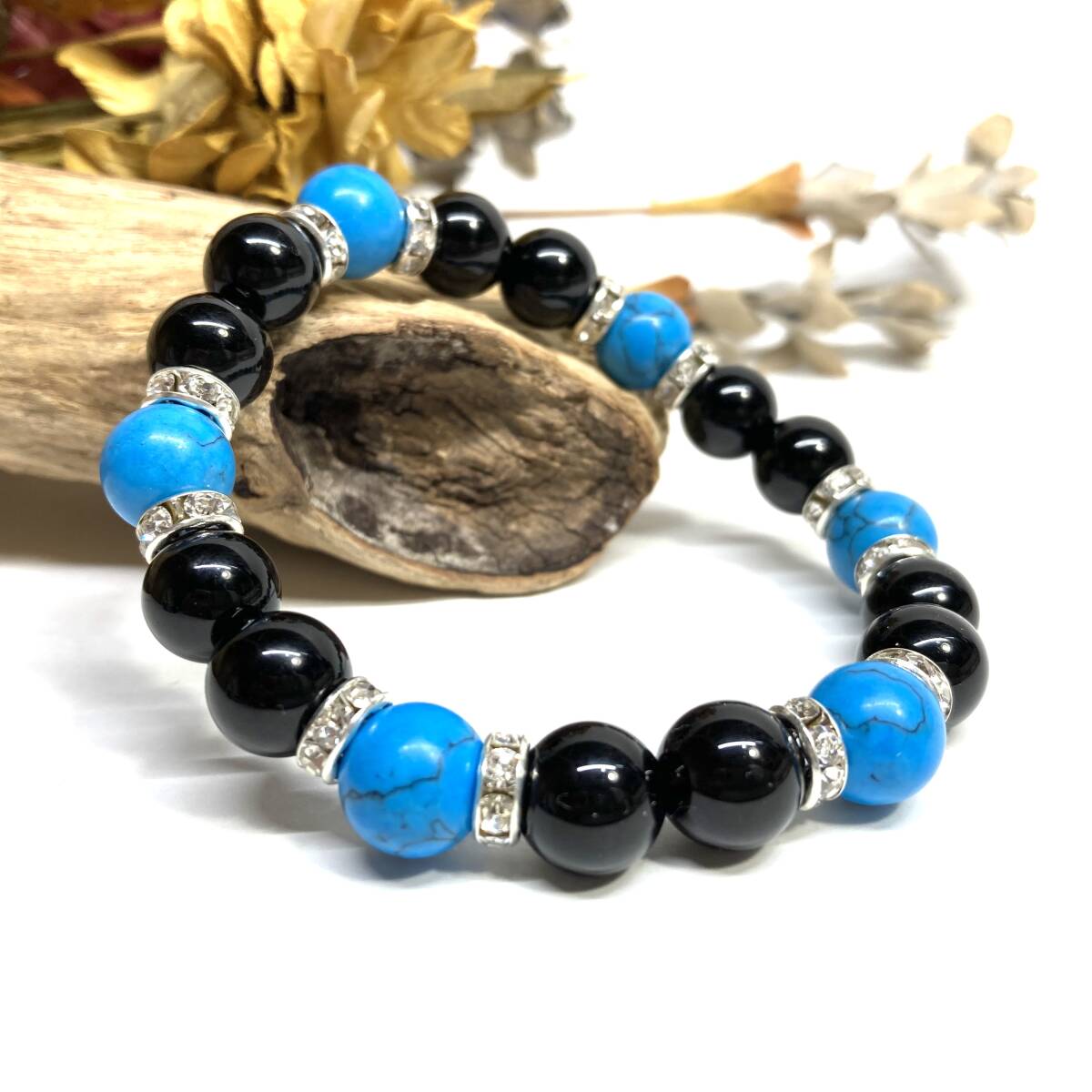 > モリオン&ターコイズ パワーストーン ブレスレット (シルバー) 10mm メンズ・レディース 厄除け 成功 人間関係 ストレス ☆