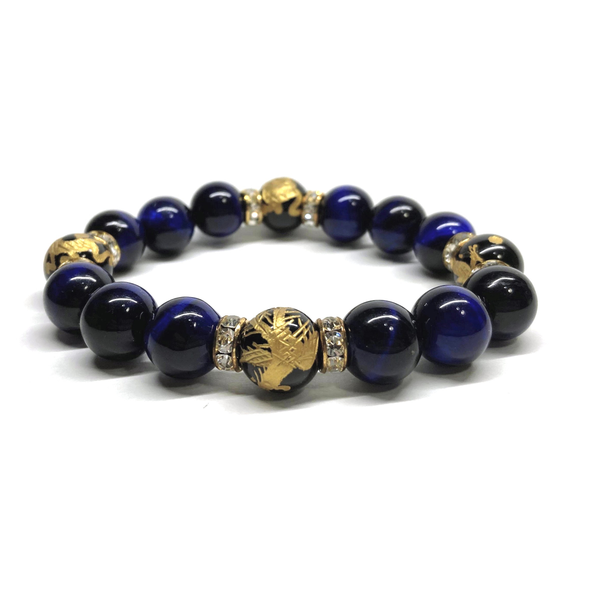 - 四神獣金彫オニキス×ブルータイガーアイ 12mm パワーストーン ブレスレット 天然石 青龍 白虎 玄武 朱雀 運気上昇 開運 金運 お守りG