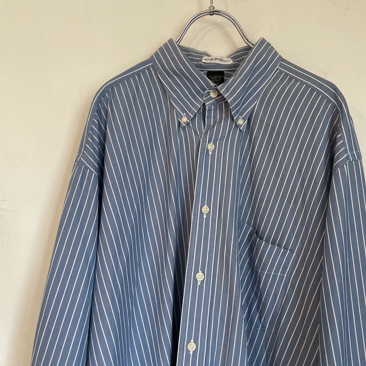 - ビンテージ USA製 ストライプ コットン ボタンダウン シャツ 5 ヴィンテージ ブルー系 青 メンズ L アメリカ古着 グランパシャツ 綿