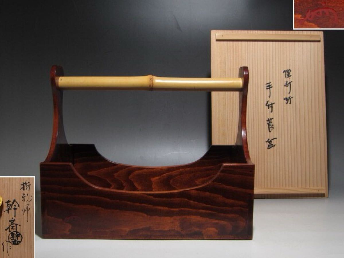 - 指物師 村岡幹斎 惺入好 手付莨盆 表千家即中斎花押☆c849