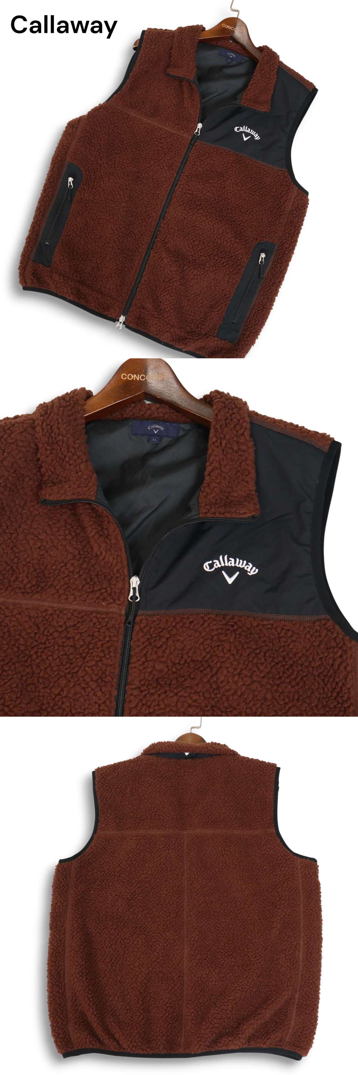 - Callaway キャロウェイ ゴルフ 秋冬 ロゴ刺繍★ ボア フリース ジップアップ ベスト Sz.LL メンズ