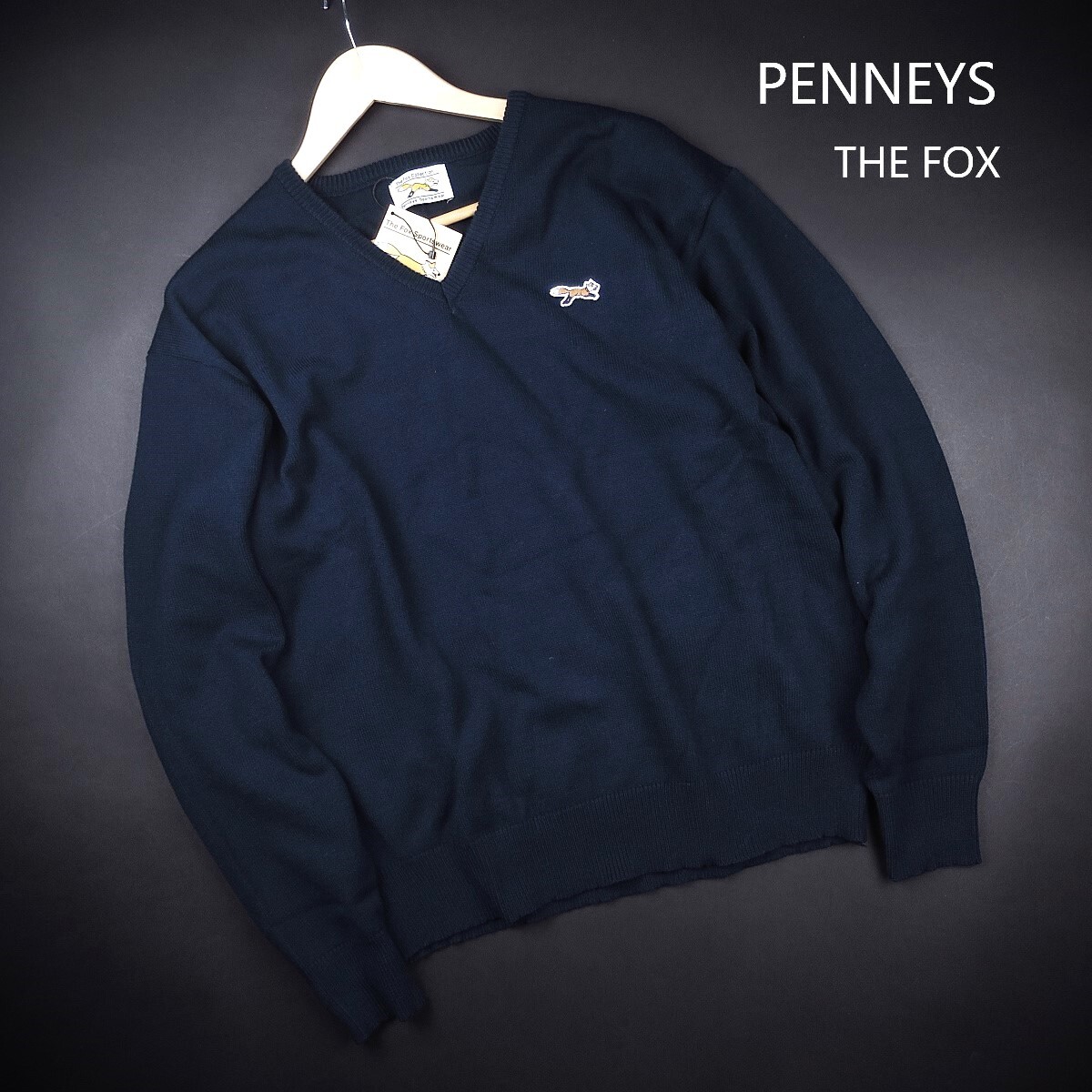 - 新品 ■ PENNEYS ペニーズ THE FOX ロゴワッペン 刺繍 Vネック ニット プルオーバー849/紺/FREEサイズ カートコバーン