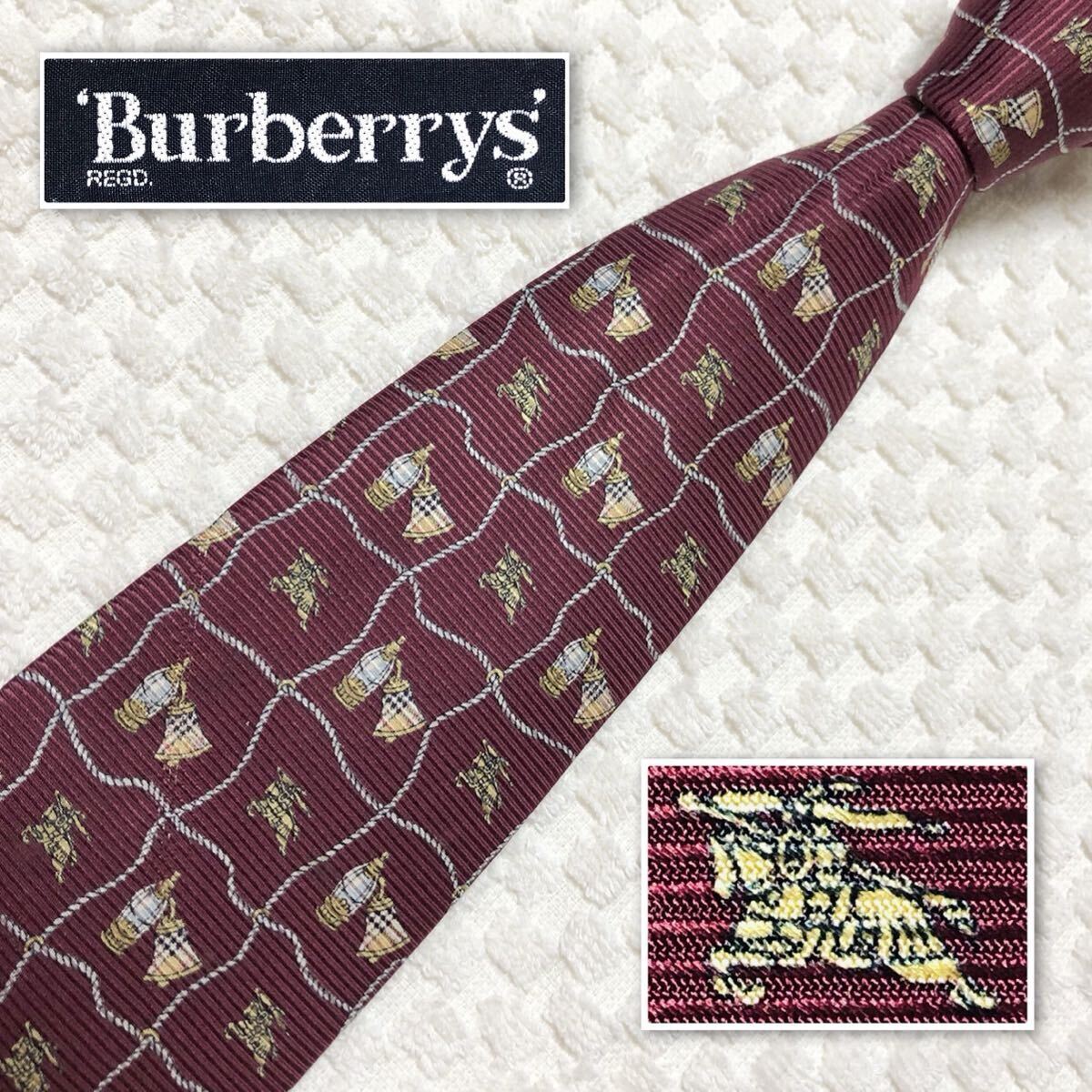 > ■美品■Burberrys バーバリー ネクタイ ロープの格子 ホースマーク ランプとベル ノバチェック 総柄 シルク100% ボルドー