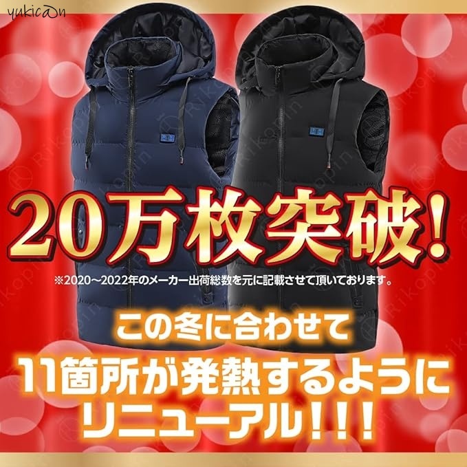 - 加熱ベスト ヒーターベスト ヒートベスト ブラック XL 前後11箇所発熱 フード付き USB給電 3段階温度調整 速暖 洗濯可 男女兼用 プレゼント