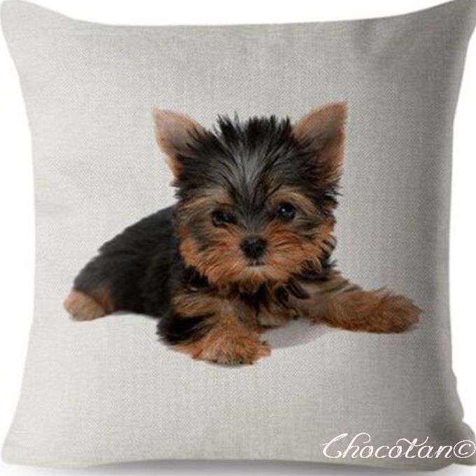 - 【送料無料】ヨークシャーテリア パピー N4 コットンリネン 45x45cm クッションカバー【新品】