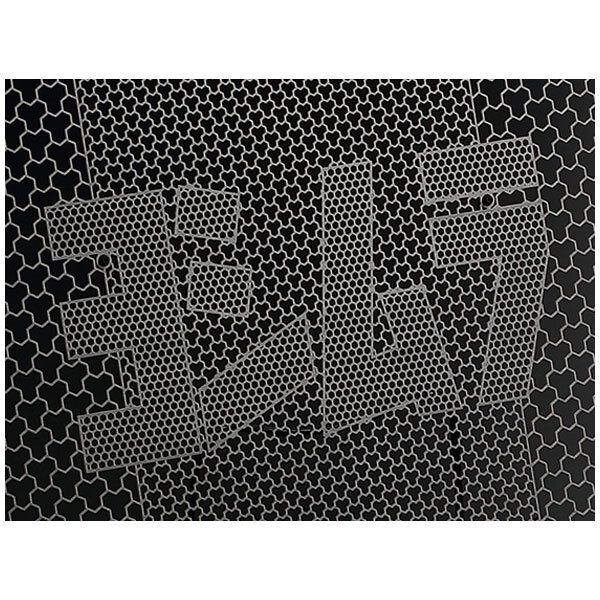 エッチング加工による高精度のhexagonal(ヘキサゴナル=亀甲)メッシュパターンを採用。