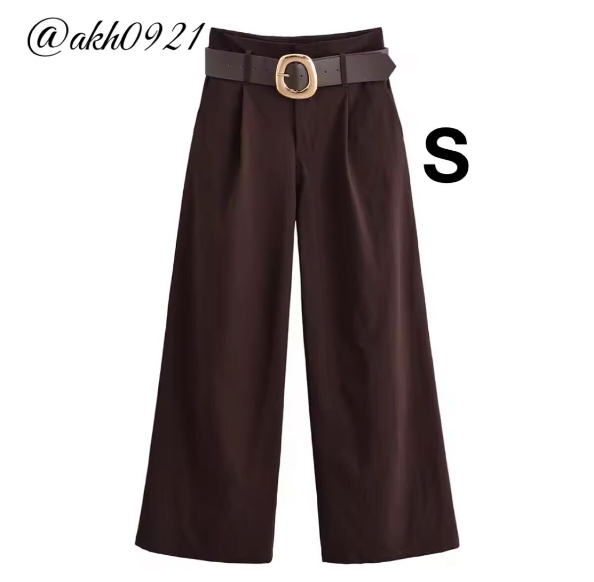 - 新品未使用★2025 秋新作★vintage ヴィンテージ レトロ ブラウン ベルト付 ロングパンツ ボトムス Sサイズ レディース★ZARA 好きな方に
