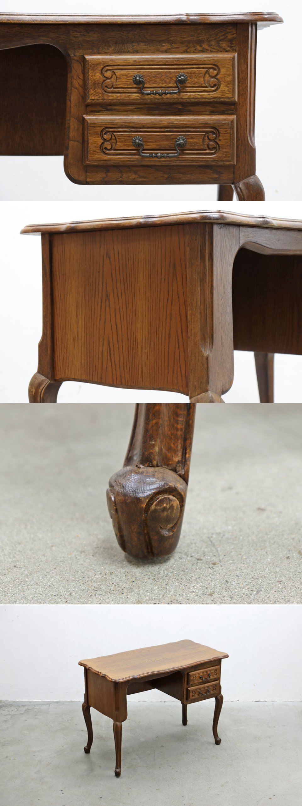 > ◆三越 Brugge ブルージュ ルーマニア オーク材 片袖デスク 机 PC 書斎 クラシカル 猫脚/ヴィンテージアンティーク英国洋館/PJT07045◆