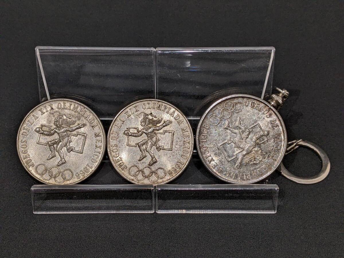 - 【821】メキシコ オリンピック 1968 25ペソ 銀貨 3点まとめ 外国硬貨 貨幣 古銭 コイン キーホルダー プルーフ アンティーク コレクション