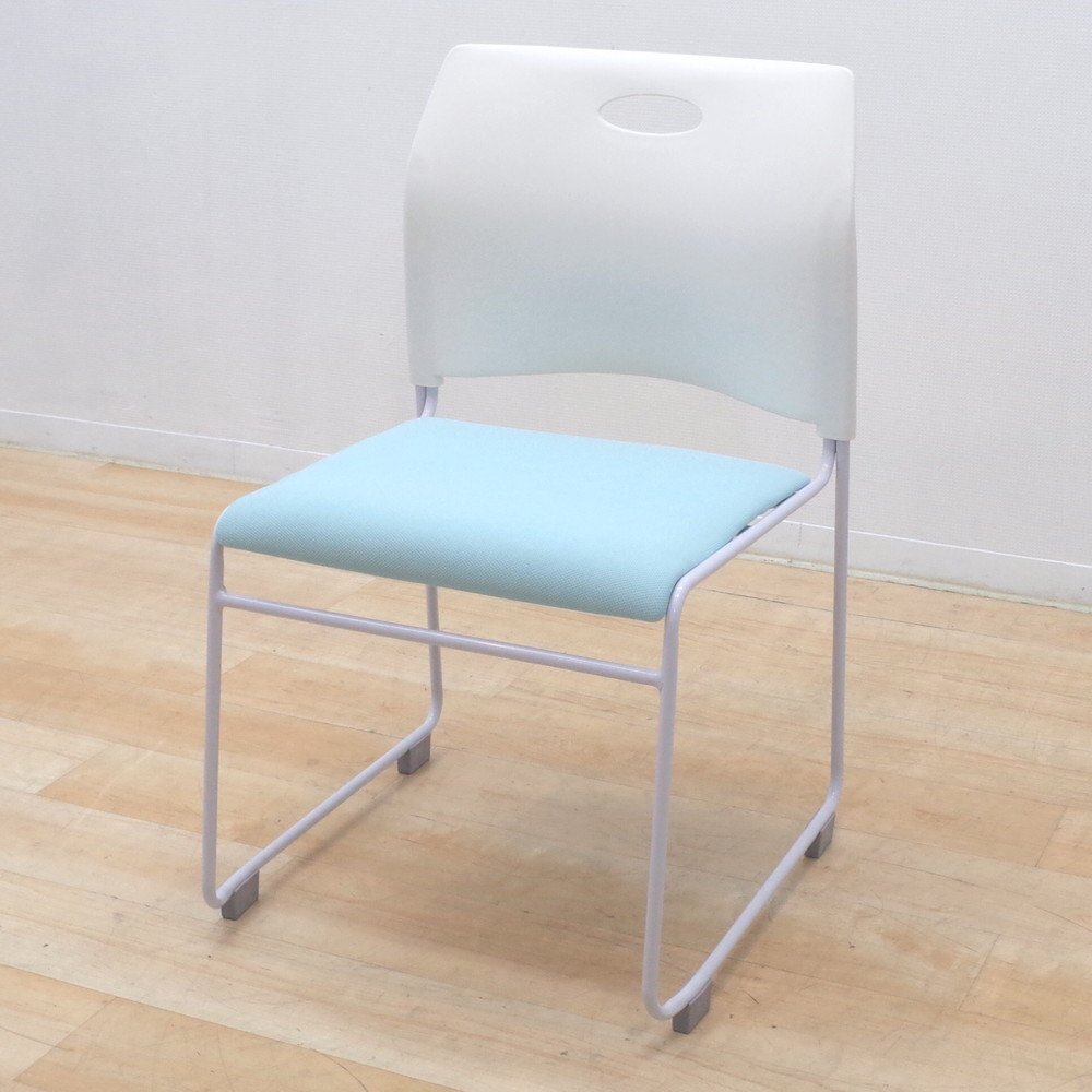 - 【新古品】 スタッキングチェア ホワイト/ミント ミーティングチェア 肘無 会議椅子 EG15626 中古オフィス家具