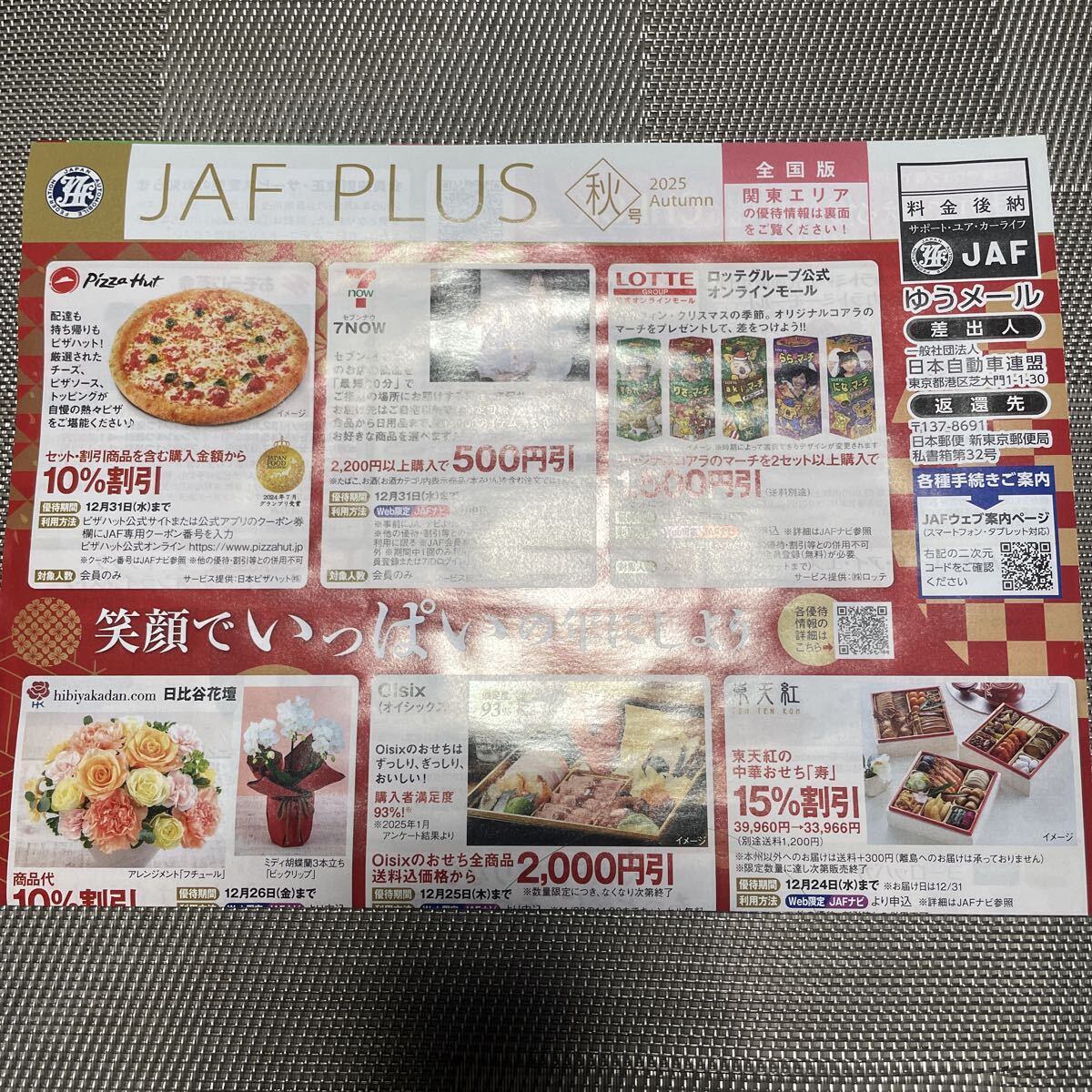 - JAF PLUS 秋号 2025 全国版 関東エリア クーポン 抜き取りなし