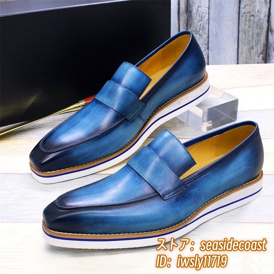 - 最高級*メンズ ローファー スリッポン 職人手作り 本革 レザーシューズ ビジネスシューズ 牛革 革靴 紳士靴 ドライビング ブルー 25.0cm