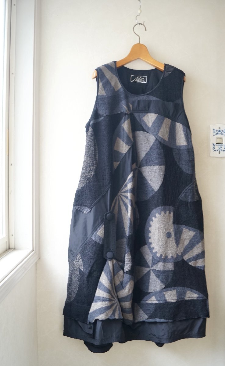 > ★EIKO KONDO /エイココンドウ *秋冬 ウール混 幾何学模様 変形 切替デザイン ワンピース /黒グレー 42* 古着のgplus広島 2510t3