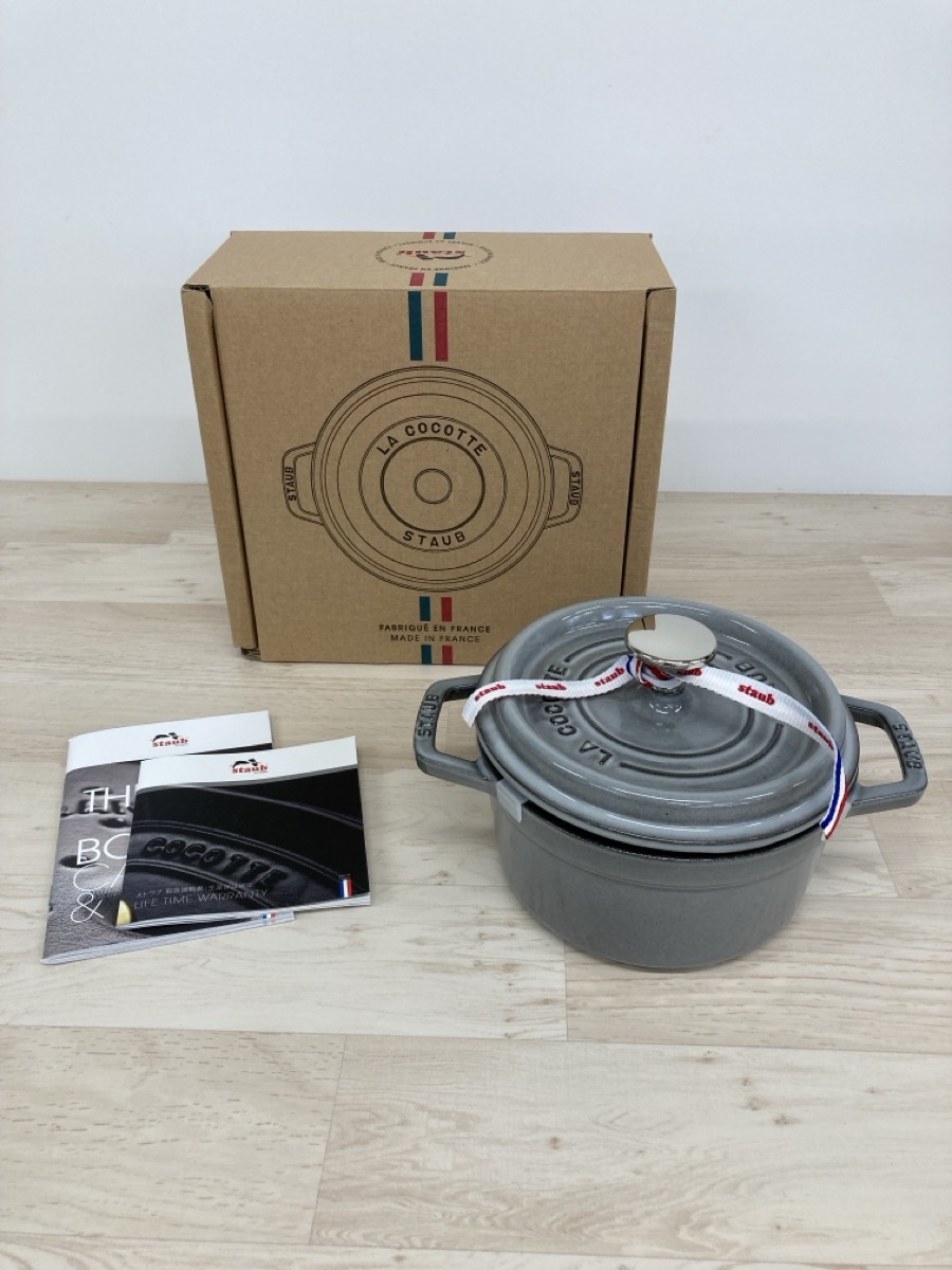 - 美品 Staub ストウブ ピコ ココット ラウンド 鍋 16cm グレー 40509-479[Q0129]
