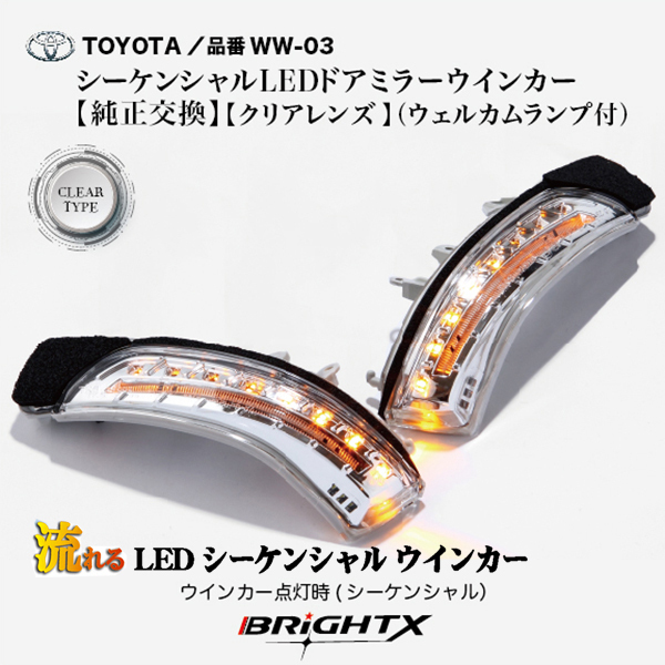 > シーケンシャル 流れる ウインカー LED トヨタ プリウス 30系 型式 : ZVW30 年式 : H21年05月~ ドアミラーウインカー カラー クリア