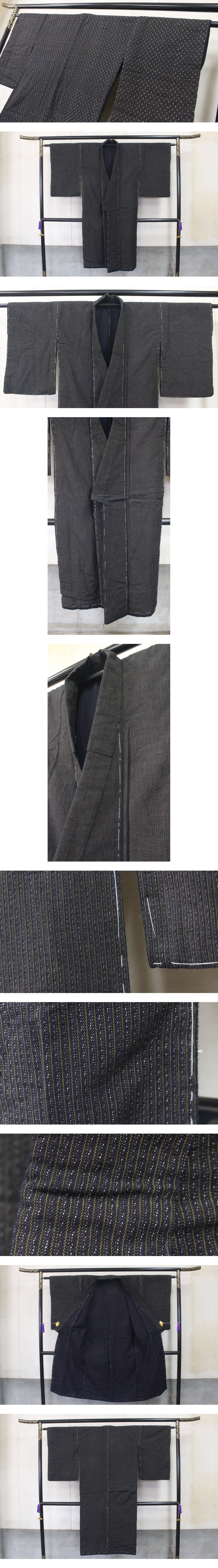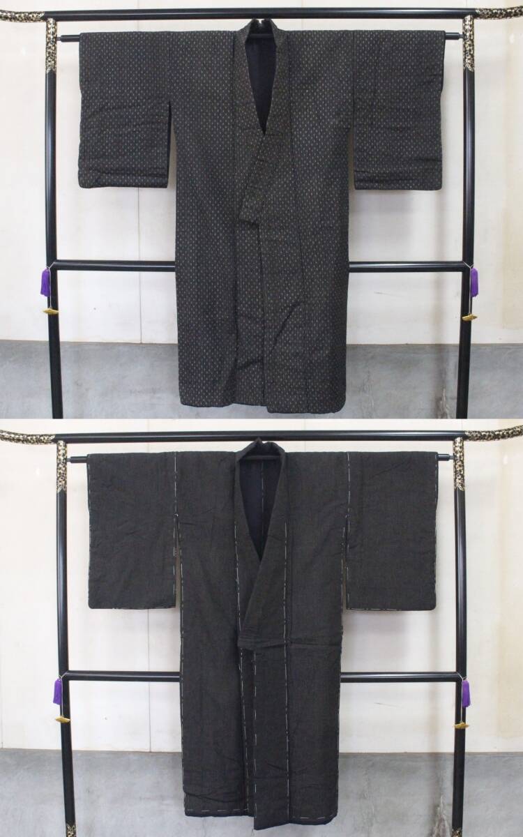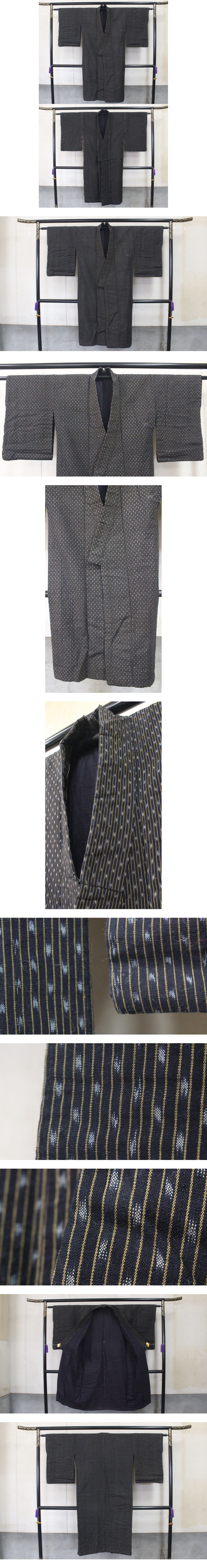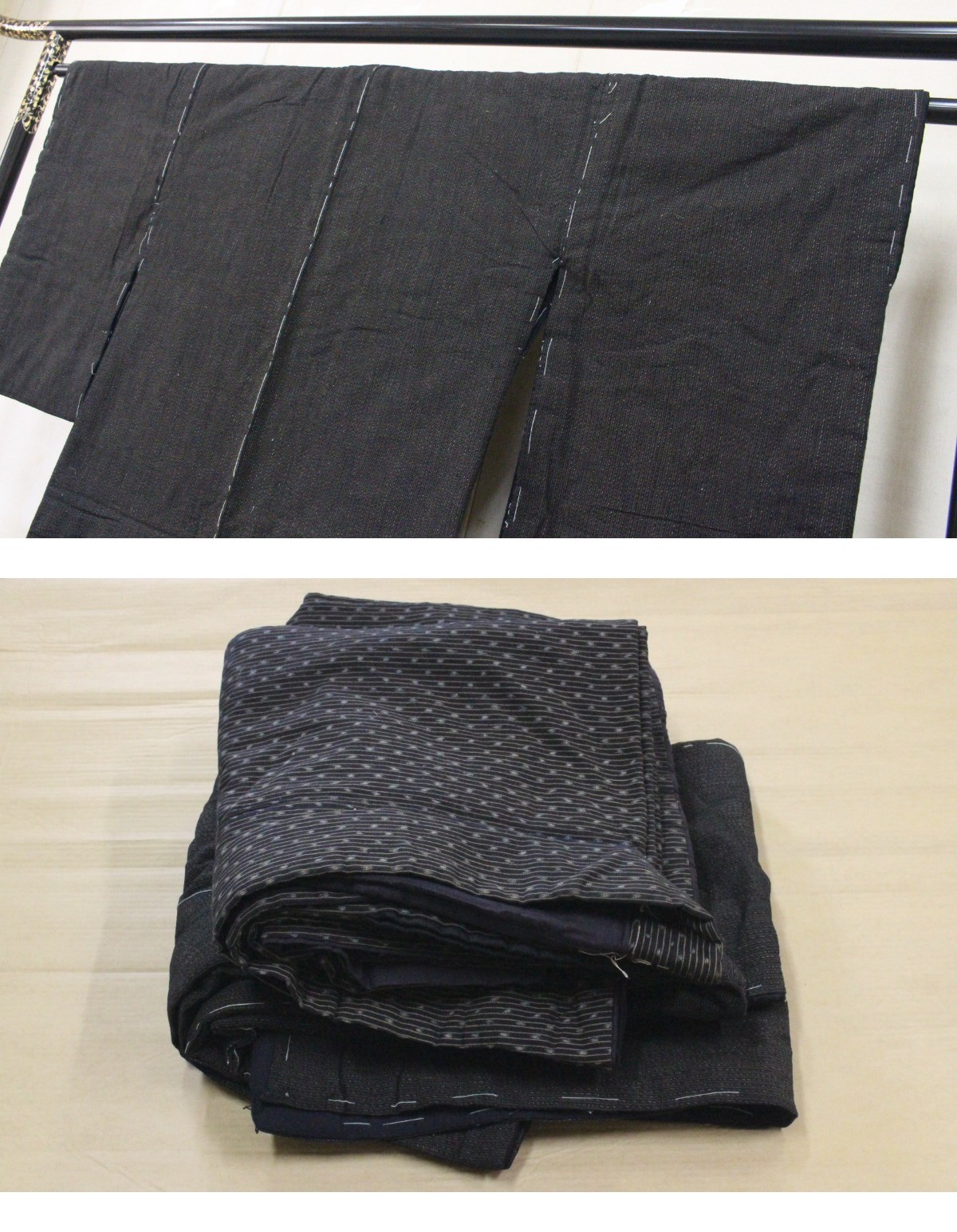 - 藍染木綿 縞絣 2点セット 時代物 日本着物和服 古布アンティーク生地 ツ11