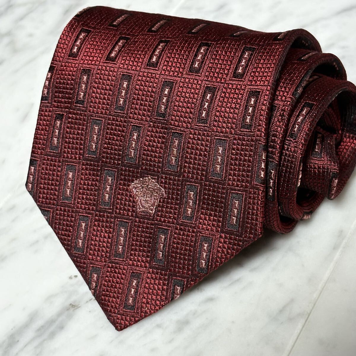 - 【美品】 999円~ VERSACE ネクタイ レッド メデューサ柄 (R8)