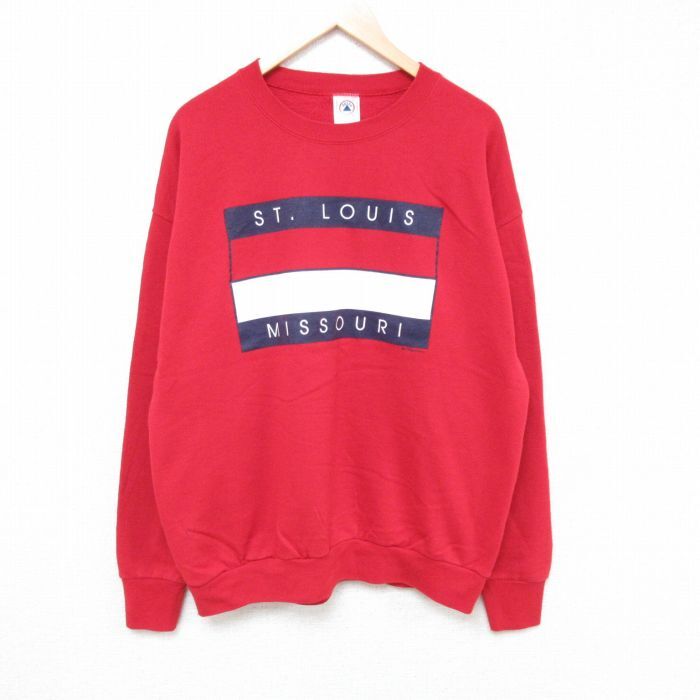 - XL/古着 長袖 スウェット メンズ 90s セントルイス ミズーリ クルーネック 赤 レッド 23oct25 中古 スエット トレーナー ト