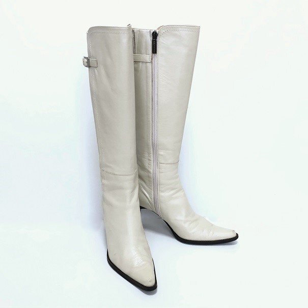 > ●ANNE KLEIN アンクライン レザー ロングブーツ 35 1/2 /am-A-186-5182-.45/アイボリー/ベージュ/高級/お洒落/安い/正規品/本物