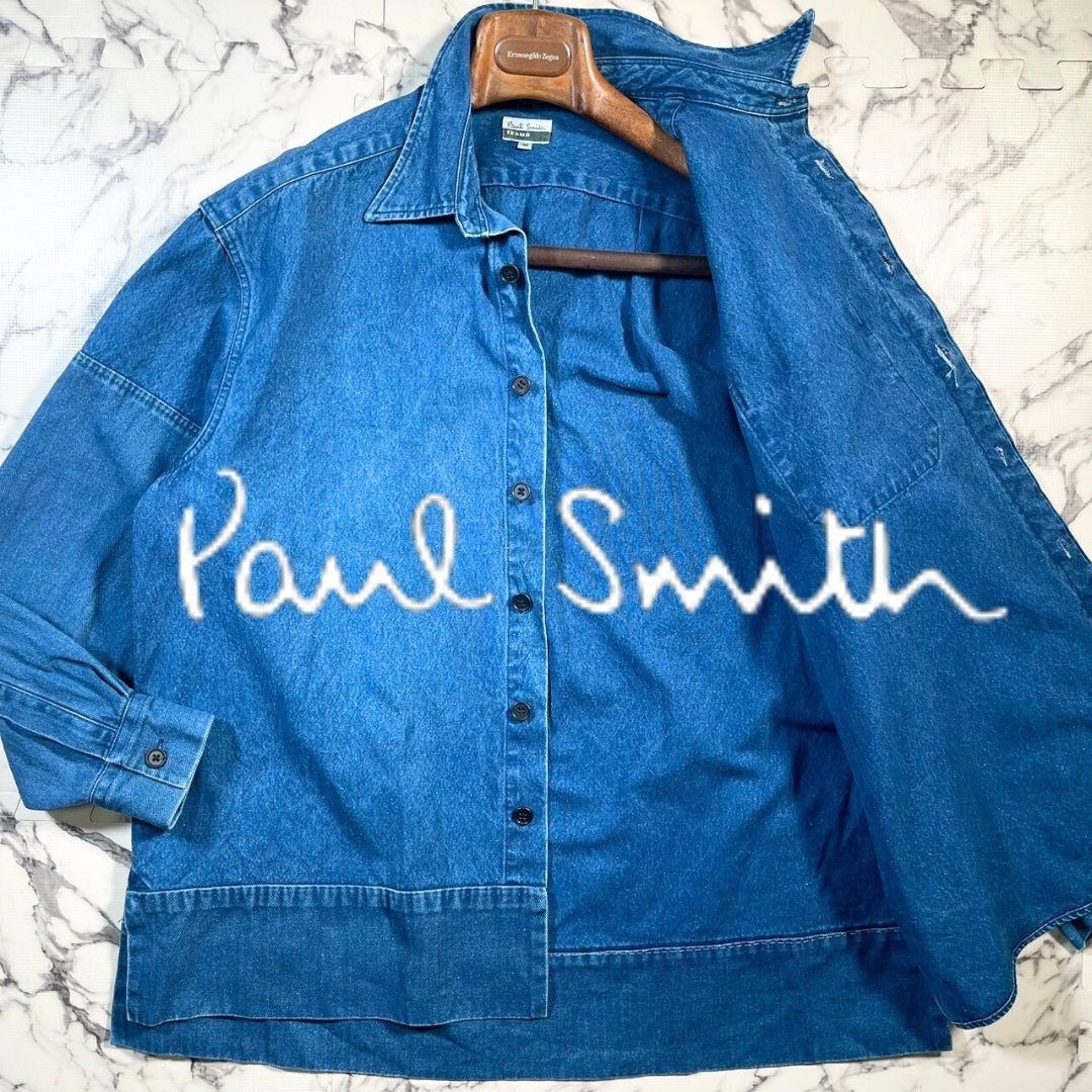 > 美品/カバーオール(XL位)●Paul Smith ポールスミス 長袖 デニム シャツ ジャケット インディゴ ブルー 青 カジュアル コットン メンズ