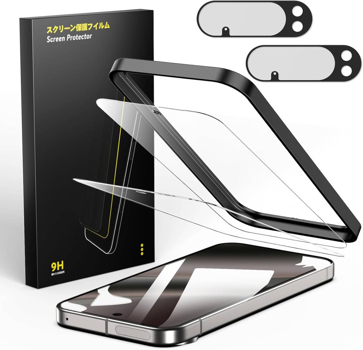 > ガラスフィルム Google Pixel 10 Pro XL 用 2枚 + カメラフィルム 2枚 旭硝子素材製 【指紋認証対応】【ガイド枠付き】