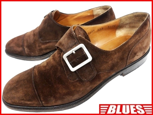 - 即決★イタリア製 Salvatore Ferragamo★25.5cm レザーモンクストラップシューズ フェラガモ メンズ 7.5 茶 本革 ベルト 本皮 革靴
