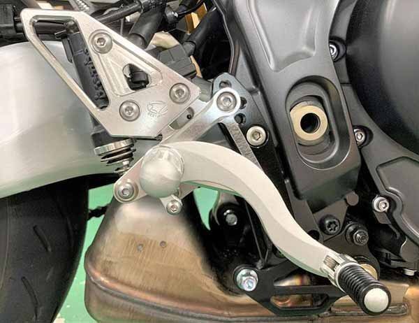 ・万が一の転倒等のアクシデントにも、ダメージを最小限に抑える様、チェンジ及びブレーキペダルのつま先部のピンに、可倒式を採用。