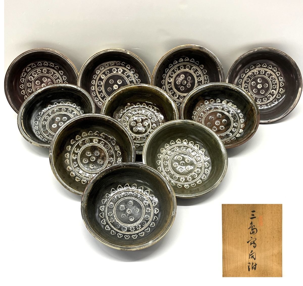 - 【R710】希少 当時物 九谷清々軒 名工 矢口永寿造 三島写 茶碗 10客 花模様 九谷焼 ヴィンテージ 共箱 三島茶碗 b