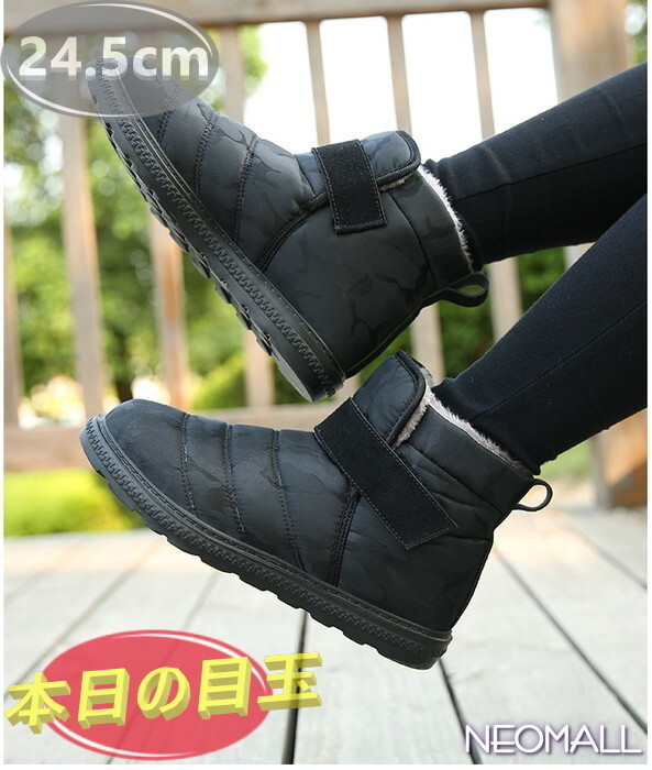 > ユニセックス スノーシューズ 【870】 24.5cm 迷彩ブラック ムートンブーツ スニーカー ウィンターブーツ 裏起毛 防水 防寒 防滑 冬用靴