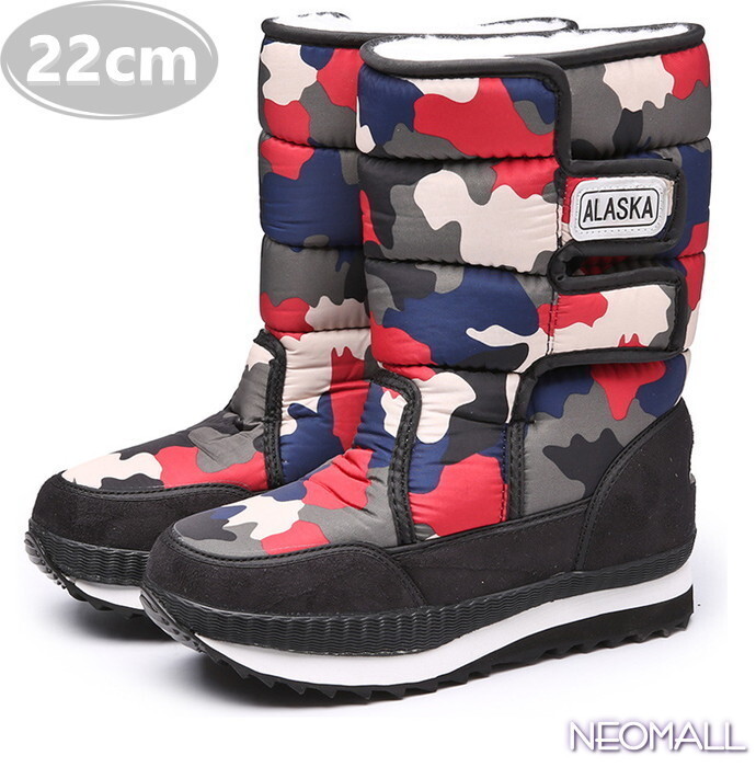 > キッズ スノーシューズ 【953】 22.0cm レッド ムートンブーツ スニーカー ウィンターブーツ 裏起毛 防水 防寒 防滑 冬用靴 綿靴